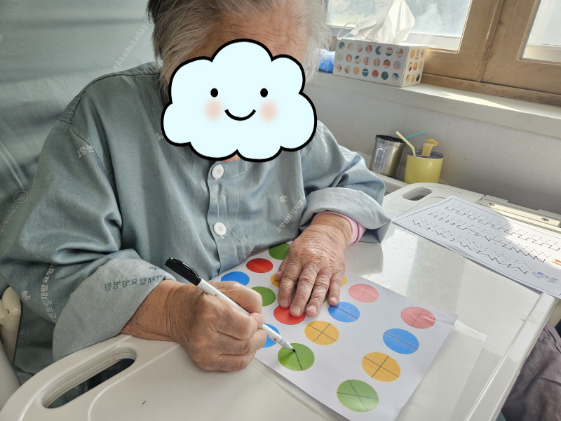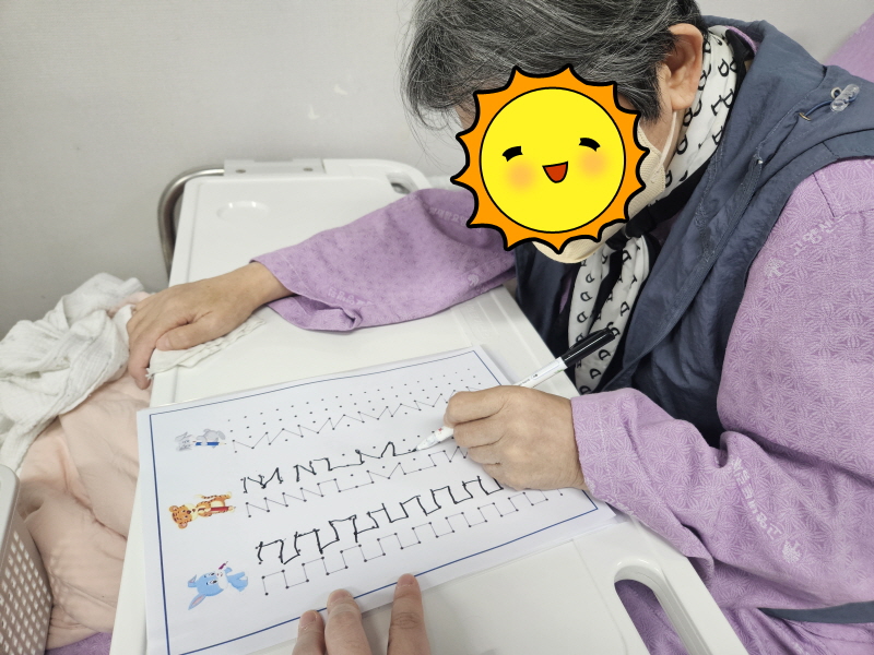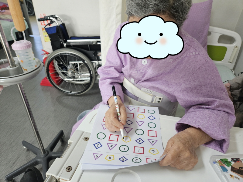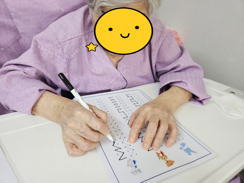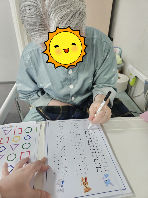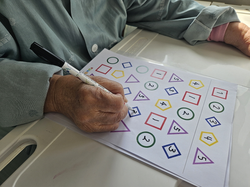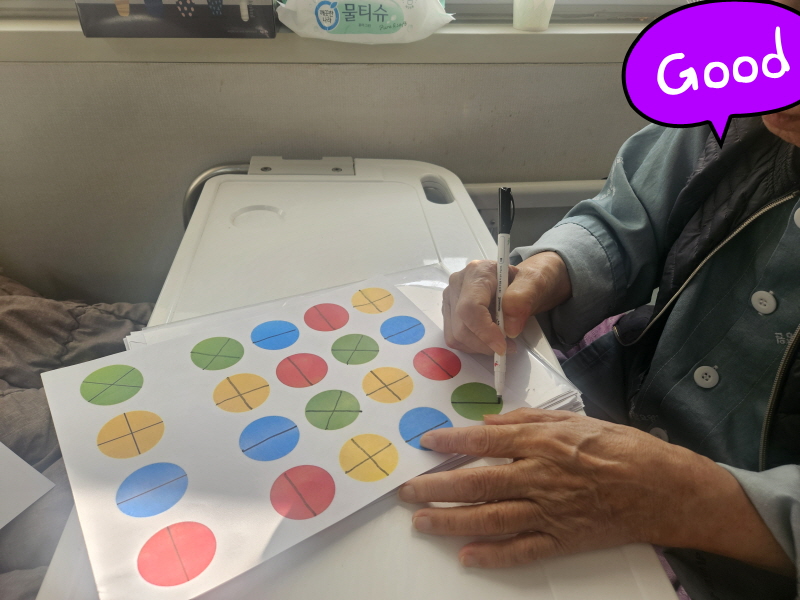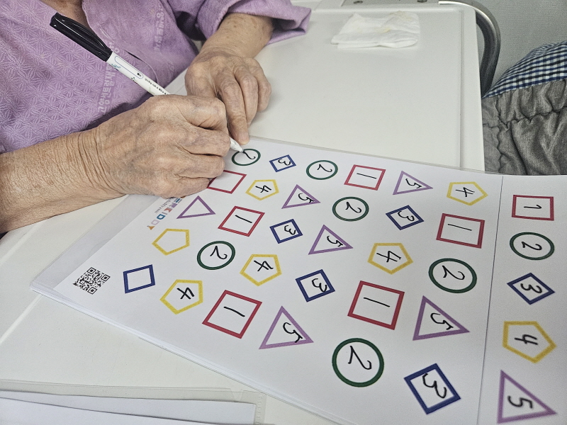 학습지를 풀면서 뇌 활동을 활성화하는 것이 목적이므로 어르신들의 집중력과 관찰력을 자극하여