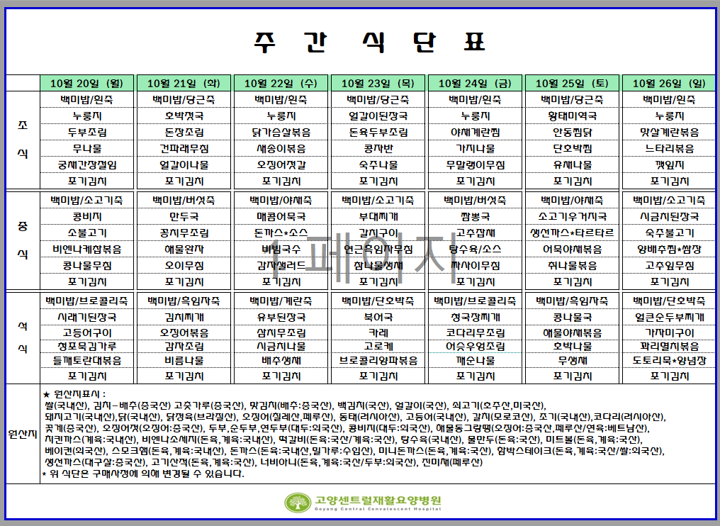 10.20-10.26 주간식단표