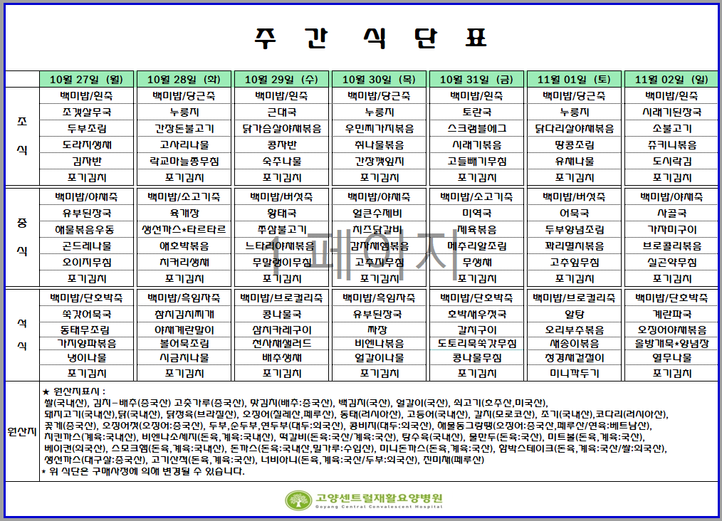 10.27 - 11.02 주간식단표
