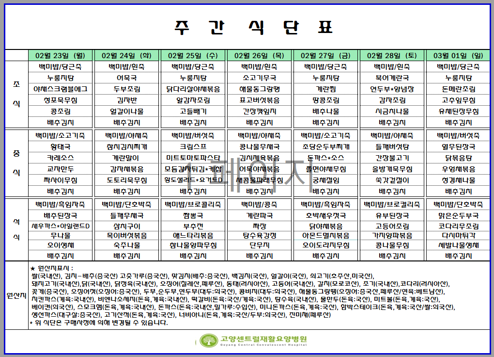 02.23 - 03.01 주간식단표