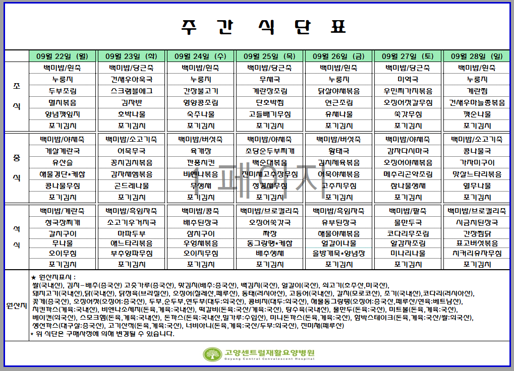 09.22 - 09.28 주간식단표